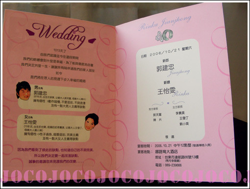 Rinka來找Joco設計喜帖時,拿了小S的喜帖照片給Joco看,說他很喜歡這種照片排在一起的感覺,當然啦!這種東西是難不倒Joco的