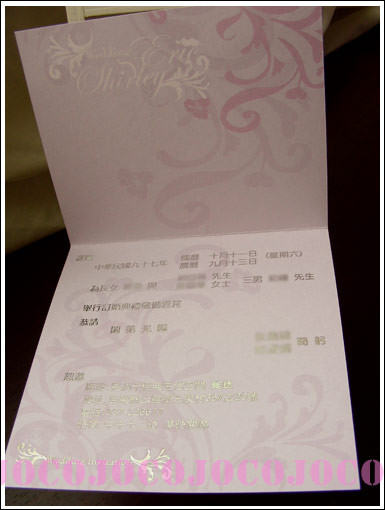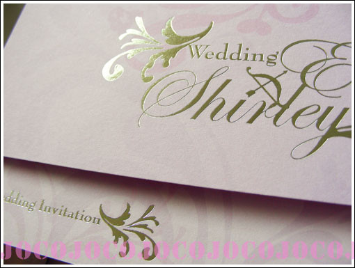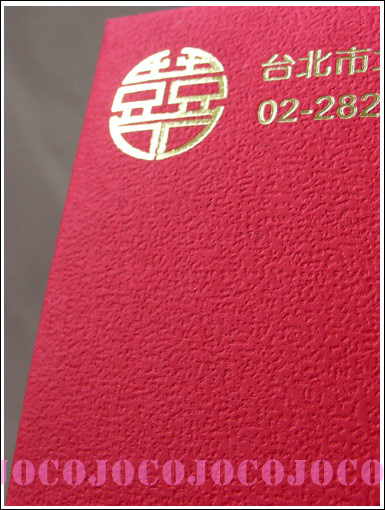不過因為下面的wedding invitation要跟封面的婚禮圖騰相輝映的話...Joco覺得還是銀色比較恰當。而且..燙的超美的..謝謝燙金工廠的伯伯~~![]()