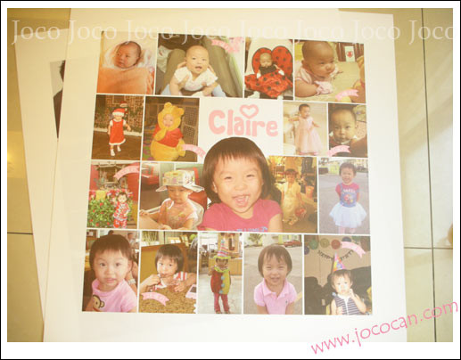 這次是這位人妻的親戚要結婚,一次作3幅比較優惠,所以Claire在兩歲的時候,也有了自己的成長油畫框了喔!!! 從上到下左到右,就是這位可愛甜美的小朋友成長中比較具代表性的一些照片啦! 原本Joco拿到約100多張照片.....心理還納悶怎麼放的下去...(好啦! 是我浮誇... Claire的媽媽沒有對Joco這麼壞,他有好好的挑選照片的啦..嘿嘿)