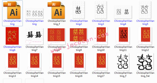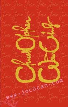 這個idea其實我也不太記得是誰先的了.... 好像是琬婷在製做前提出來,因為嫁外國人,所以要有中文的感覺,他在網路上看到有人用過英文名字來製作囍字,有點洋味也很中國味....但是,需要這樣對Joco嗎???? Christopher & Wanting 兩個字數差這麼多...也沒有像樣的o可以做成囍字中間的"口" 這真是非常非常難的一個習題.......